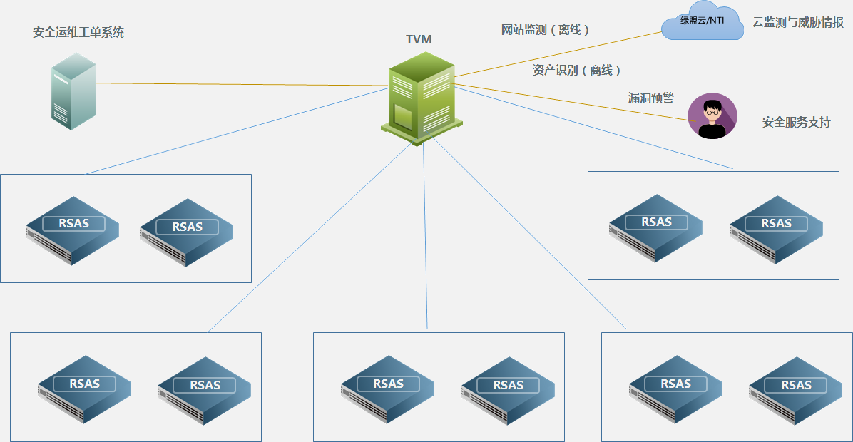 基于以上現狀,建立一套對安全漏洞進行跟蹤、整改、反饋、全面反映行內總體漏洞安全狀況的安全支撐系統已勢在必行。通過建立這樣一套采集漏洞數據、基線結果、滲透測試等信息的系統來實現業務中心快速響應、有序修補、持續優化的漏洞管理能力。并籍此實現對資產漏洞信息進行統一關聯、展現和告警,使得管理人員可以有效跟蹤資產漏洞整改狀態,清楚的掌握全網的安全健康狀況。最終實現對行內基礎網絡設備用戶的安全防護,并發揮更大的安全價值。處于以上需求考慮,2017年該行通過部署綠盟TVM實現了其全行的漏洞的閉環管理。